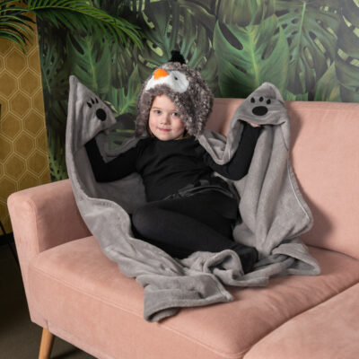 Fleece παιδική κουβέρτα με κουκούλα και χεράκια – Πιγκουίνος