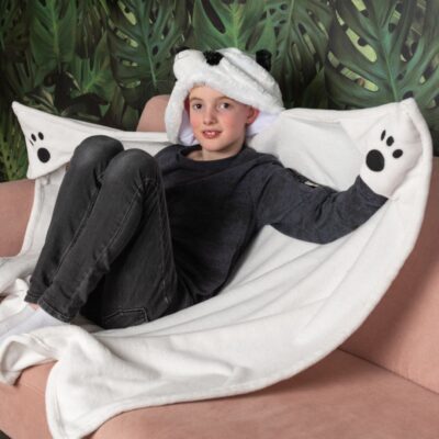 Fleece παιδική κουβέρτα με κουκούλα και χεράκια – Panda