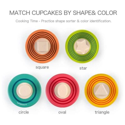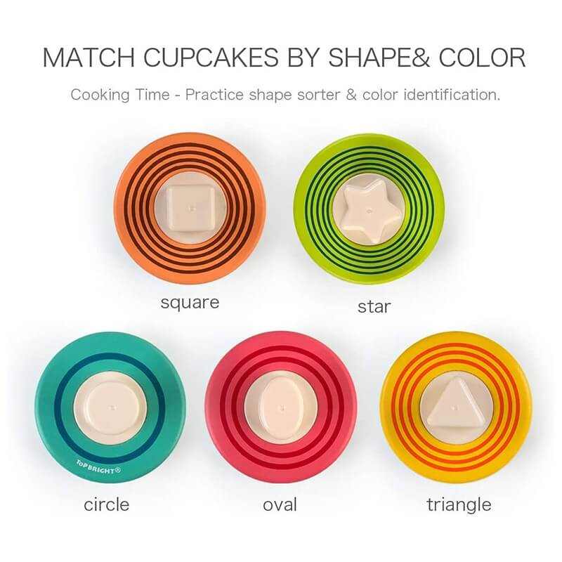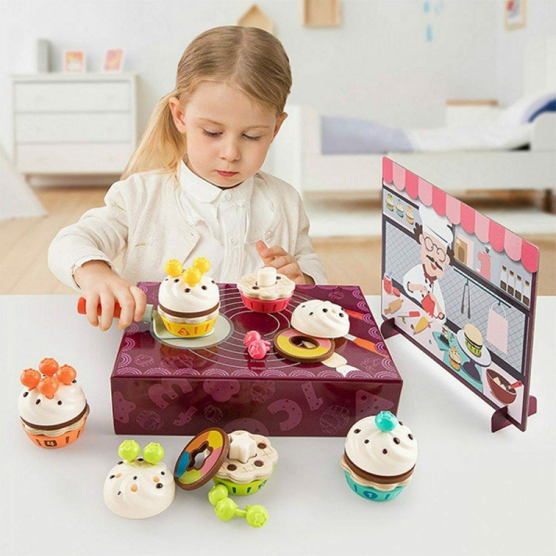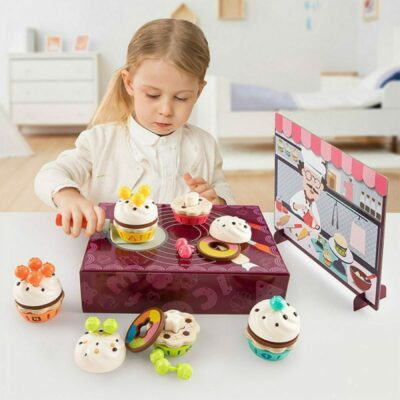 Τα παιδιά θα απολαύσουν μοναδικές ώρες φανταστικής διασκέδασης καθώς διακοσμούν τα κέικ. Δώστε στα παιδιά μια γευστική πρόκληση – Αντιστοιχίστε τις βάσεις των cupcakes και στοιβάξτε τις γλυκιές επιστρώσεις τους με βάση το σχήμα. Το χρώμα της βάσης ταιριάζει με το χρώμα των φρούτων, σε κάθε cupcake μπορεί να τοποθετηθεί μόνο το σωστό σχήμα στρώσης καθώς κάθε βάση έχει διαφορετικούς αριθμούς οπών. Τα παιδιά θα λατρέψουν το παιχνίδι καθώς θα μαθαίνουν για χρώματα, αριθμούς και σχήματα με αυτά τα πολύχρωμα cupcakes. Η συσκευασία μετατρέπεται εύκολα σε μικρή κουζίνα ενώ αποτελεί ταυτόχρονα και κουτί αποθήκευσης. Το Fruit Cake Box της Top Bright αποτελεί την ιδανική πρόταση παιχνιδιού για γονείς και παιδιά, τα παιδιά μιμούνται το ρόλο του chef και οι γονείς έρχονται με τη σειρά τους ως πελάτες και παίρνουν τις παραγγελίες τους.