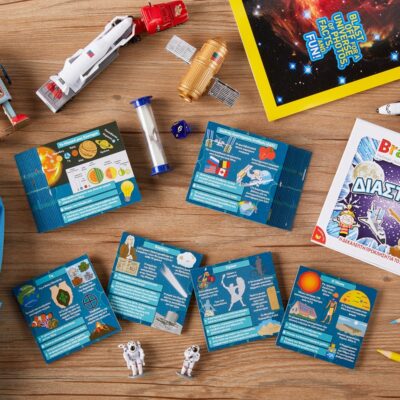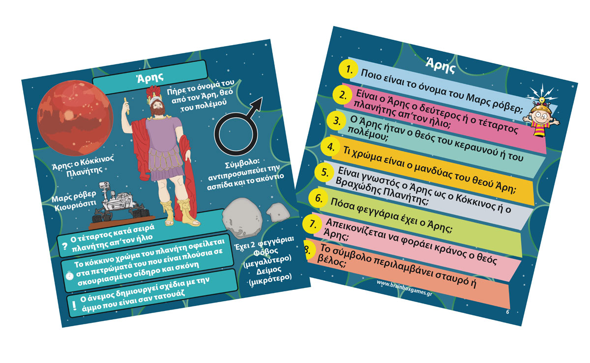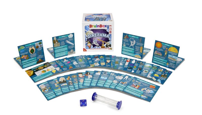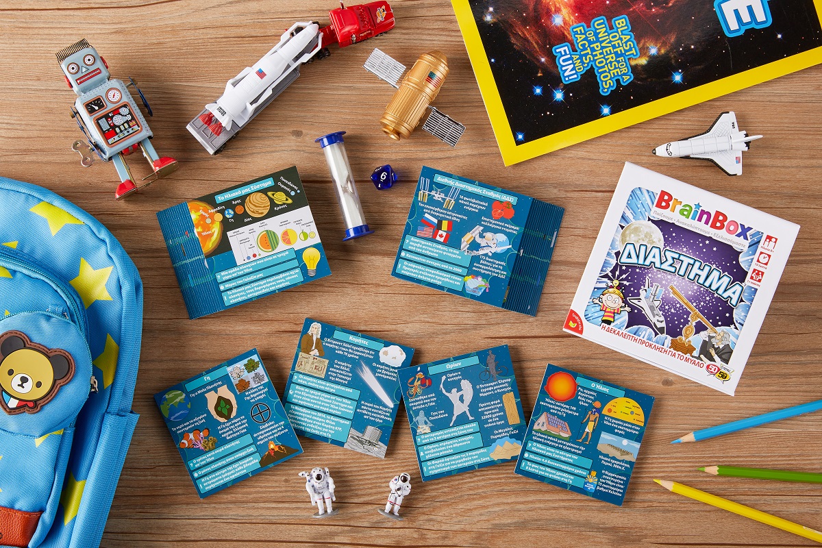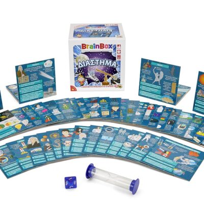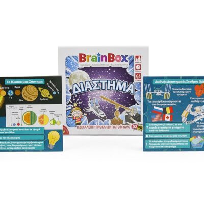 Ξεκίνα την αντίστροφη μέτρηση, δέσε τη ζώνη σου και απογειώσου για μια κοσμική περιπέτεια που θα σε συναρπάσει! Διάλεξε μια κάρτα μέσα από το BrainBox. Αναποδογύρισε την κλεψύδρα και προσπάθησε να μάθεις απ’έξω την κάρτα σε 10 δευτερόλεπτα! Τώρα ρίξε το ζάρι και απάντησε στην αντίστοιχη ερώτηση. Αν απαντήσεις σωστά κρατάς την κάρτα, αν απαντήσεις λάθος βάζεις την κάρτα πάλι μέσα στο BrainBox.