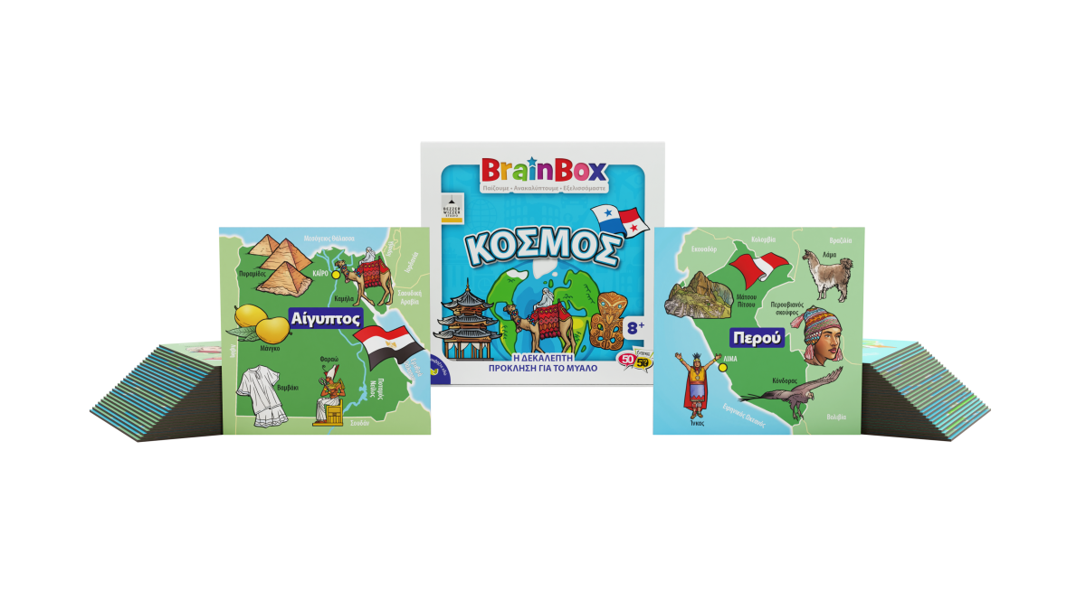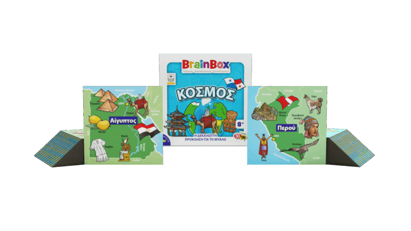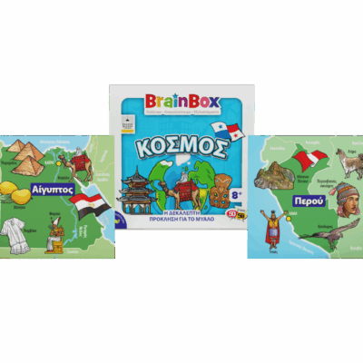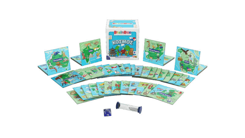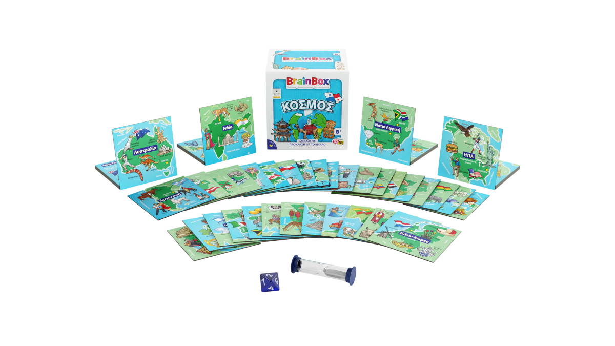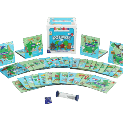 Εξερεύνησε όλες τις χώρες του κόσμου από το σπίτι σου! Διάλεξε μια κάρτα μέσα από το BrainBox. Αναποδογύρισε την κλεψύδρα και προσπάθησε να μάθεις απ’έξω την κάρτα σε 10 δευτερόλεπτα! Τώρα ρίξε το ζάρι και απάντησε στην αντίστοιχη ερώτηση. Αν απαντήσεις σωστά κρατάς την κάρτα, αν απαντήσεις λάθος βάζεις την κάρτα πάλι μέσα στο BrainBox.