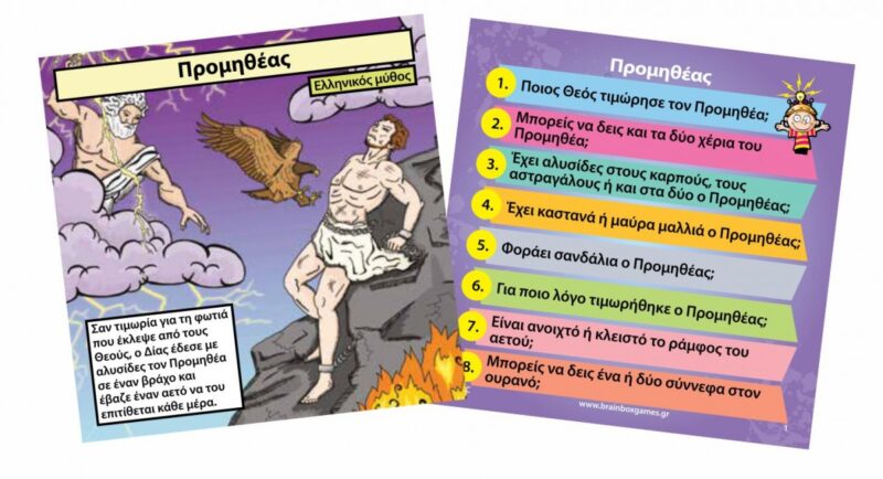 Κάποιοι από τους μύθους που περιλαμβάνει αυτό το BrainBox είναι: Το κουτί της Πανδώρας, Ο Δούρειος Ίππος, Ο Οδυσσέας και ο Κύκλωπας, Οι Δώδεκα Άθλοι του Ηρακλή, Ο Φοίνικας, Ο Κένταυρος, Ο Προμηθέας, Ο Δαίδαλος και ο Ίκαρος και άλλοι πολλοί..