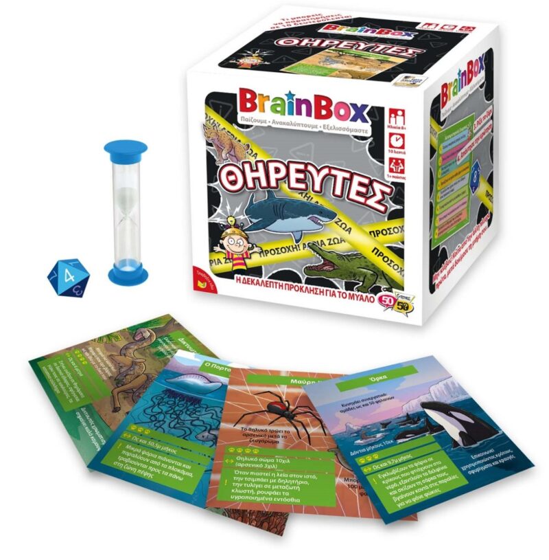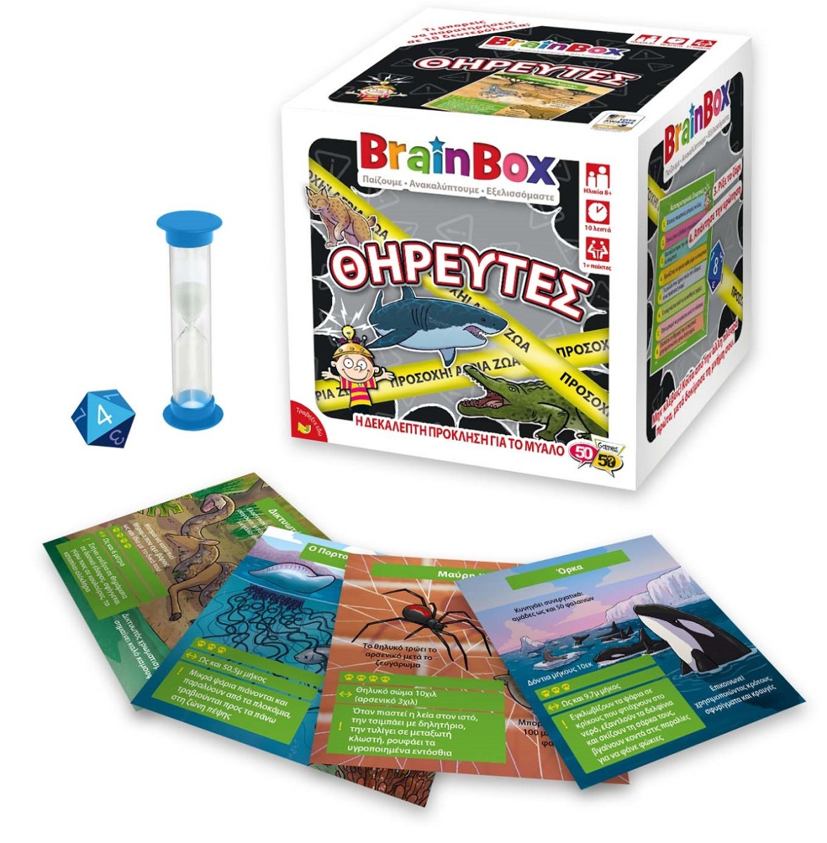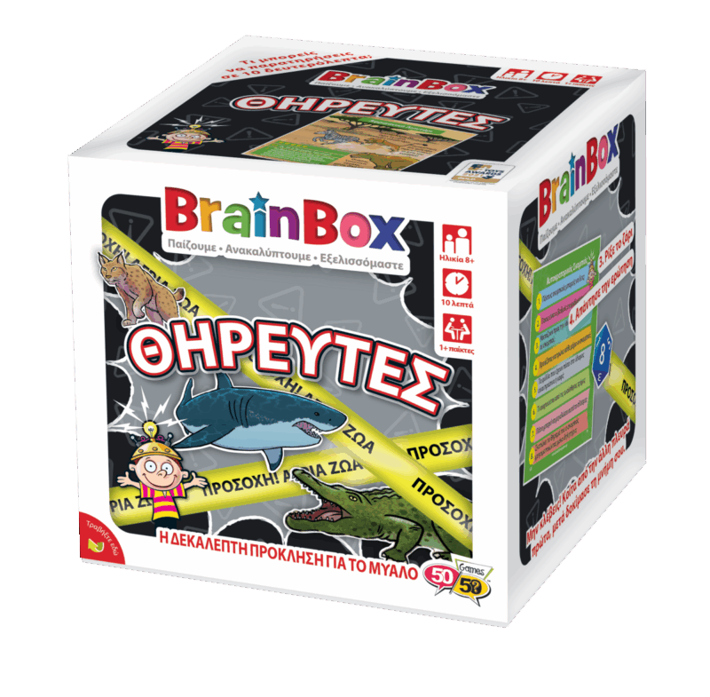 Πρόσεχε! Μερικά από τα πιο επικίνδυνα πλάσματα στον πλανήτη βρίσκονται μέσα σε αυτό το BrainBox, περιμένοντας να δουν αν οι παρατηρητικές και μνημονικές σου ικανότητες είναι αρκετά καλές για να σε κρατήσουν ασφαλή! Από τον γκρίζο λύκο ως τον μεγάλο λευκό καρχαρία, από τον χρυσό δηλητηριώδη βάτραχο ως την πολική αρκούδα, από τη βασιλική κόμπρα ως την όρκα, αυτό το φανταστικό BrainBox περιέχει τα πιο άγρια και τα πιο τρομακτικά ζώα του ζωικού βασιλείου. Τολμάς να ανοίξεις το κουτί;