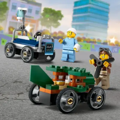 LEGO City Airplane vs. Hospital Bed Race Car Pack (60459). Ενθουσιάστε τον μικρό σας λάτρη των αγώνων με το LEGO® City Airplane vs. Hospital Bed Race Car Pack (60459) για παιδιά ηλικίας 5 ετών και άνω. Αυτό το διασκεδαστικό παιχνίδι με αγωνιστικά αυτοκίνητα διαθέτει 2 αυτοκίνητα αγώνων soapbox και 2 μίνι φιγούρες. Τα παιδιά βάζουν τον πιλότο με το αεροπλάνο εναντίον του γιατρού με το εντυπωσιακά γρήγορο νοσοκομειακό κρεβάτι. Ποιος θα νικήσει; Πάρτε τη θέση σας για επική δράση με αγώνες! Αυτό το σετ αγωνιστικών αυτοκινήτων soapbox LEGO City περιλαμβάνει έναν αναλυτικό, έντυπο οδηγό κατασκευής. Τα παιδιά μπορούν επίσης να απολαύσουν μια διασκεδαστική περιπέτεια κατασκευής με την εφαρμογή LEGO Builder, όπου μπορούν να ζουμάρουν και να περιστρέφουν μοντέλα σε 3D, να παρακολουθούν την πρόοδό τους καθώς κατασκευάζουν, και να εξερευνούν και να αποθηκεύουν άλλα σετ παιχνιδιού.