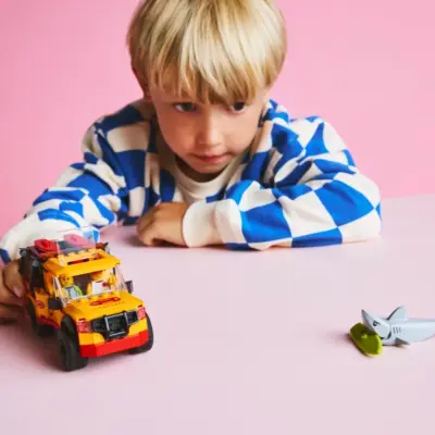 LEGO City Lifeguard Beach Rescue Truck (60453). Πολλές περιπέτειες διάσωσης στην παραλία διαφαίνονται στον ορίζοντα με το σετ παιχνιδιού LEGO® City Lifeguard Beach Rescue Truck (60453) για ηλικίες 6 ετών και άνω. Αυτό το απίθανο φορτηγό διαθέτει πόρτες, πίσω πόρτα και οροφή που ανοίγουν και ξεχειλίζει από βασικό εξοπλισμό για περιστατικά έκτακτης ανάγκης στην παραλία, όπως 2 σανίδες του σερφ, βατραχοπέδιλα, κιάλια και κουτί πρώτων βοηθειών. Το σετ περιλαμβάνει επίσης μίνι φιγούρες ναυαγοσώστη και σέρφερ και φιγούρα καρχαρία για ευρηματικό παιχνίδι και αφήγηση ιστοριών. Αυτό το σετ διάσωσης στην παραλία περιλαμβάνει έναν αναλυτικό, έντυπο οδηγό κατασκευής και 3D οδηγίες στην εφαρμογή LEGO Builder – έναν ψηφιακό οδηγό κατασκευής με απλά εργαλεία ζουμαρίσματος και περιστροφής που δίνουν στα παιδιά τη δυνατότητα να βλέπουν τα μοντέλα από όλες τις γωνίες καθώς κατασκευάζουν.