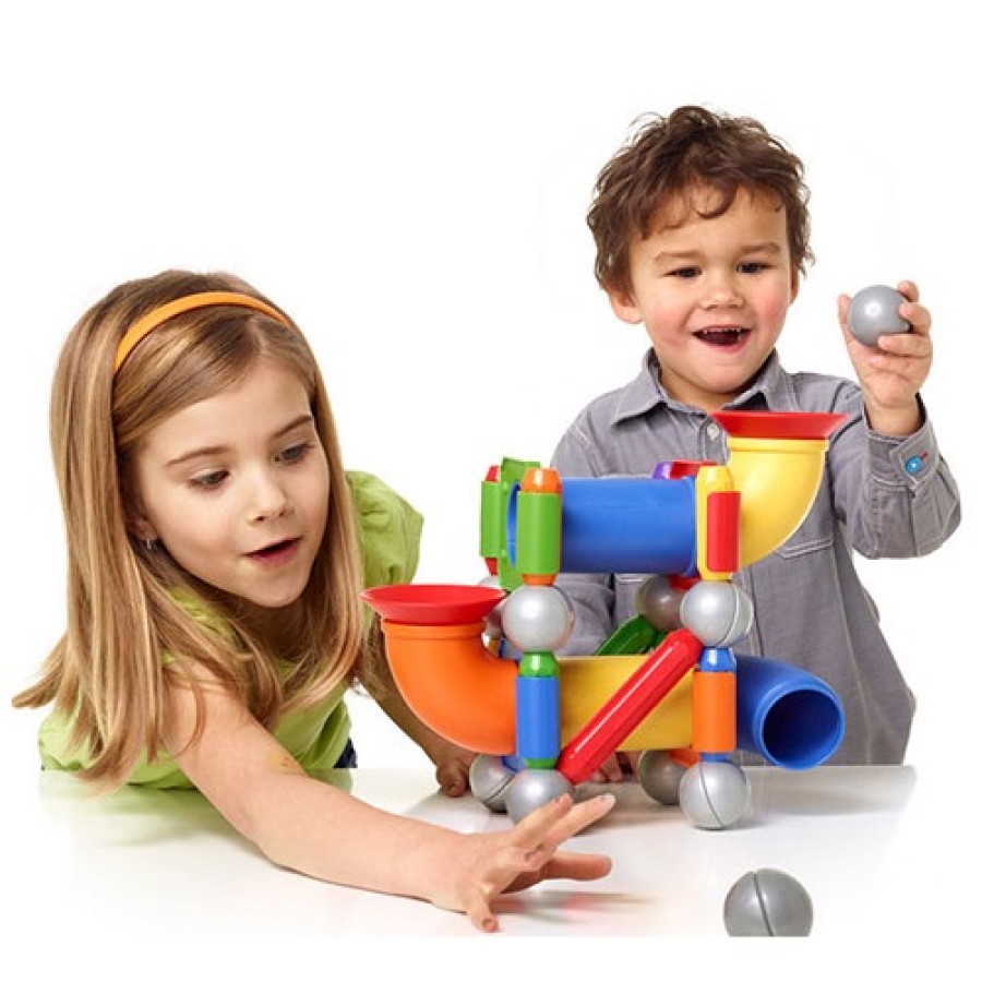 Ενώστε τα κομμάτια του μαγνητικού πάζλ που περιέχονται στην συσκευασία του παιχνιδιού και δημιουργήστε μια πίστα! Βάλτε τις μπάλες να τρέχουν! Κατασκευή με μαγνήτη που μαθαίνει στα παιδάκια σας την δύναμη και τις δυνατότητες του μαγνητισμού. Κατάλληλο για παιδιά άνω των 3 ετών.
