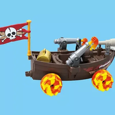 Με το σετ PLAYMOBIL Funstars «Ξέφρενη Πειρατική Βάρκα», κάθε διαδρομή μετατρέπεται σε περιπετειώδη αναζήτηση θησαυρού! Η πειρατική βάρκα εντυπωσιάζει με τα δύο κανόνια της, που χρησιμοποιούνται σε συναρπαστικές ναυμαχίες και κινείται πάνω σε τέσσερις τροχούς φωτιάς στη στεριά. Στο τιμόνι, ο γενναίος πειρατής, εξοπλισμένος με τηλεσκόπιο, έτοιμος να ανακαλύψει τον επόμενο θησαυρό. Το σεντούκι θησαυρού είναι καλά αποθηκευμένο στο σκάφος, ενώ η άγκυρα είναι πάντα έτοιμη να ακινητοποιήσει με ασφάλεια το σκάφος. Είτε σε συναρπαστικές μάχες είτε σε μυστηριώδεις εξορμήσεις – η Ξέφρενη Πειρατική Βάρκα προσφέρει φανταστική διασκέδαση για παιδιά άνω των 4 ετών!
