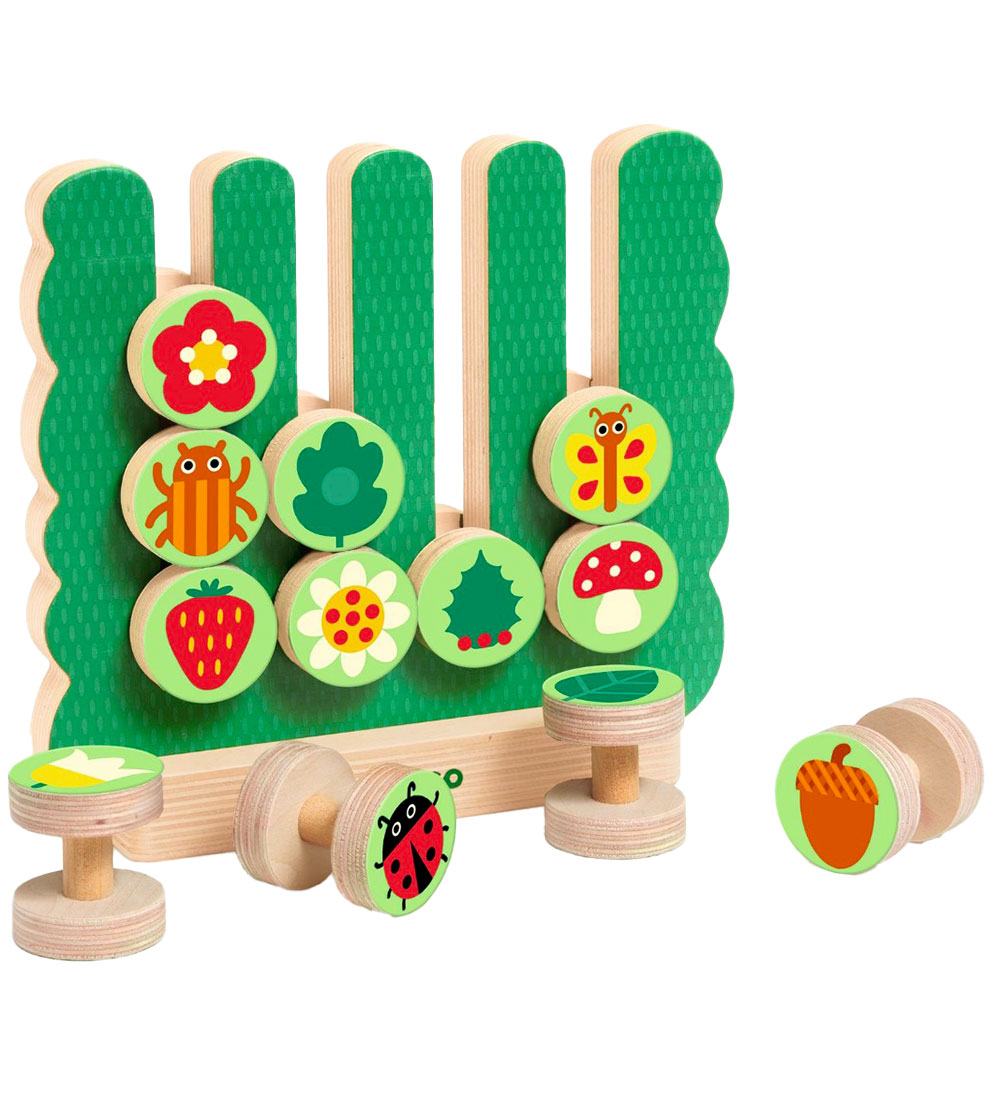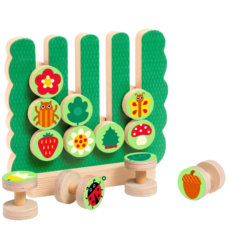 Το παζλ της Djeco αποτελείται από μια όρθια σανίδα και 12 στρογγυλά ξύλινα κομμάτια με μοτίβα από τον κήπο, τα οποία τοποθετούνται στις τέσσερις εγκοπές της σανίδας. Περιλαμβάνονται 10 κάρτες διπλής όψης με συνολικά 20 τρόπους τοποθέτησης των ξύλινων κομματιών στις εγκοπές, τους οποίους το παιδί πρέπει να αντιγράψει – ακριβώς όπως σε ένα παζλ. Το παζλ είναι ιδανικό για τα χέρια των μικρών παιδιών και καθαρίζεται εύκολα.