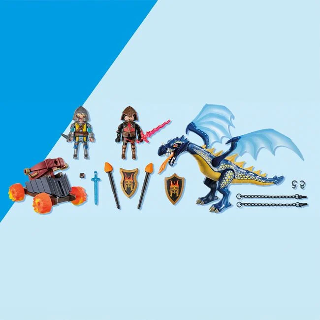 Περιλαμβάνει δύο φιγούρες PLAYMOBIL, δράκο και πολλά αξεσουάρ.