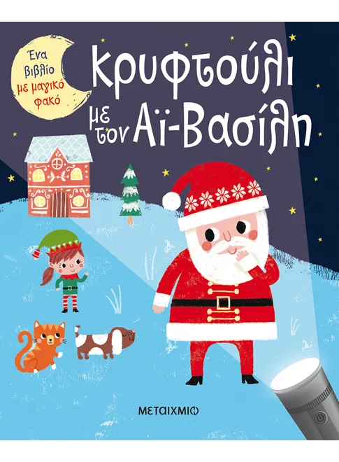 Το παιδί βάζει τον «μαγικό» φακό ανάμεσα στις σελίδες και «φωτίζει» τις εικόνες για να βρει ένα σωρό χριστουγεννιάτικες φατσούλες.