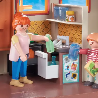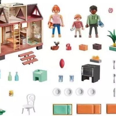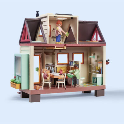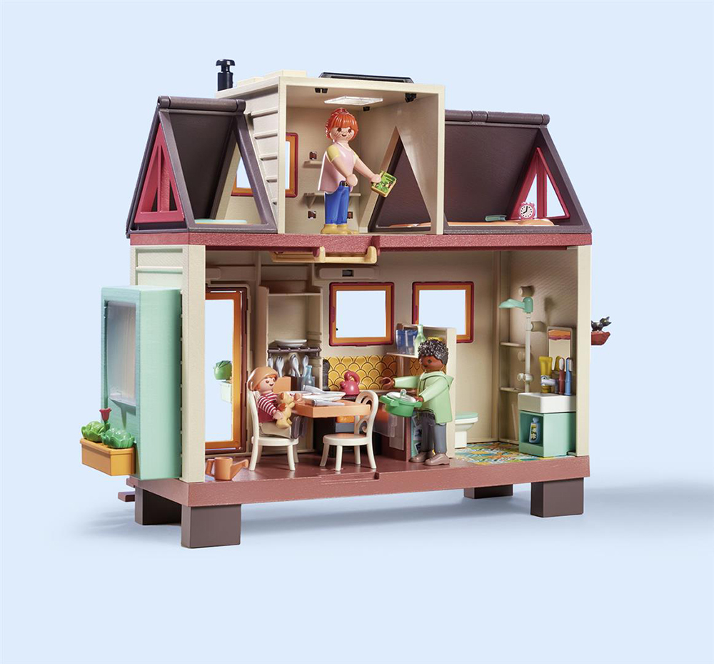 Το σετ παιχνιδιού περιλαμβάνει τρεις φιγούρες PLAYMOBIL, ένα διώροφο σπίτι με κουζίνα, μπάνιο, σοφίτα και έπιπλα, καθώς και πολλά αξεσουάρ.