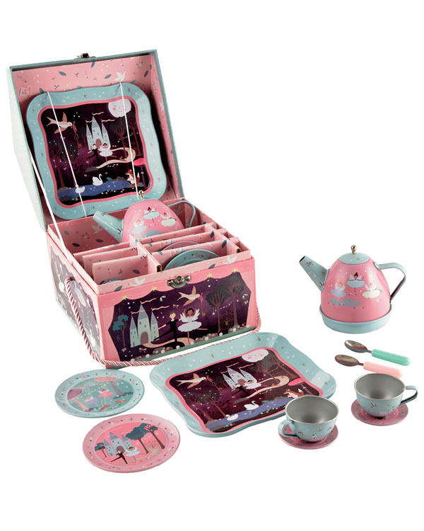 Αυτό δεν είναι απλά ένα ακόμα σετ τσαγιού… Είναι ένα σετ τσαγιού που παίζει μουσική όταν σερβίρεις το τσάι! Μπαλαρίνες και κύκνοι πρωταγωνιστούν στο πανέμορφα διακοσμημένο Μαγεμένο σετ τσαγιού. Φανταστείτε να κάνετε πάρτι τσαγιού και να ακούτε τη Λίμνη των Κύκνων κουρδίζοντας την τσαγιέρα και γεμίζοντας τα φλιτζάνια!