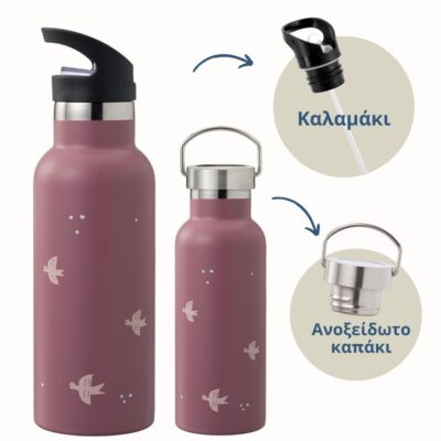 Ιδανικό για μικρά παιδιά με ενσωματωμένο πτυσσόμενο καλαμάκι και με δύο διαφορετικά πώματα.