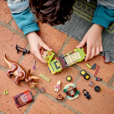 LEGO Jurassic World Triceraptops Research (76959)). Έλα μαζί με τη Dr. Ellie Sattler και τον Ian Malcolm σε μια ερευνητική αποστολή. Μπες στο Ford Explorer και χρησιμοποίησε το σύστημα πλοήγησης του οχήματος για να βρεις δεινόσαυρους. Πρόσεχε! Υπάρχει ένας Triceraptops και δεν δείχνει καλά. Βγες από το όχημα και φρόντισε τον άρρωστο δεινόσαυρο. Μετά, χρησιμοποίησε το φτυάρι για να σκάψεις τις ακαθαρσίες του δεινόσαυρου και να βρεις τι προκάλεσε την ασθένεια!