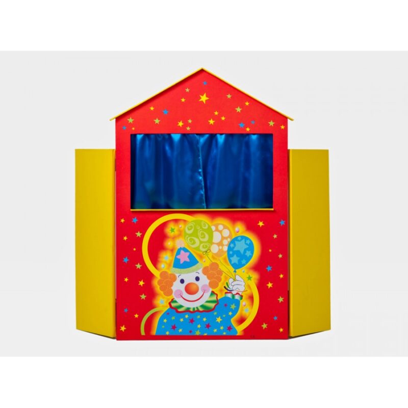 Κουκλοθέατρο ξύλινο, μεσαίου μεγέθους, επιδαπέδιο – επιτραπέζιο, κατάλληλο για παιδικό δωμάτιο, για εσωτερικούς και εξωτερικούς χώρους , με πόρτες που κλείνουν, εύκολο στην μεταφορά και στην αποθήκευση. Έχει σκεπή με φαρδιά ξύλινα κεραμίδια που το κάνουν ξεχωριστό, αφού μοιάζει με σπιτάκι. Η σκηνή του διαθέτει υφασμάτινες σατέν κουρτίνες και έχει σταθερή επιφάνεια, η οποία διευκολύνει τα παιδιά να τοποθετούν κούκλες κι άλλα αντικείμενα την ώρα της παράστασης. Διαθέτει μεγάλες πόρτες που προσφέρουν στήριξη και ασφάλεια, αλλά και την αίσθηση της κρυψώνας μέσα στην οποία το παιδί δημιουργεί το δικό του κόσμο.