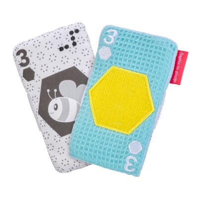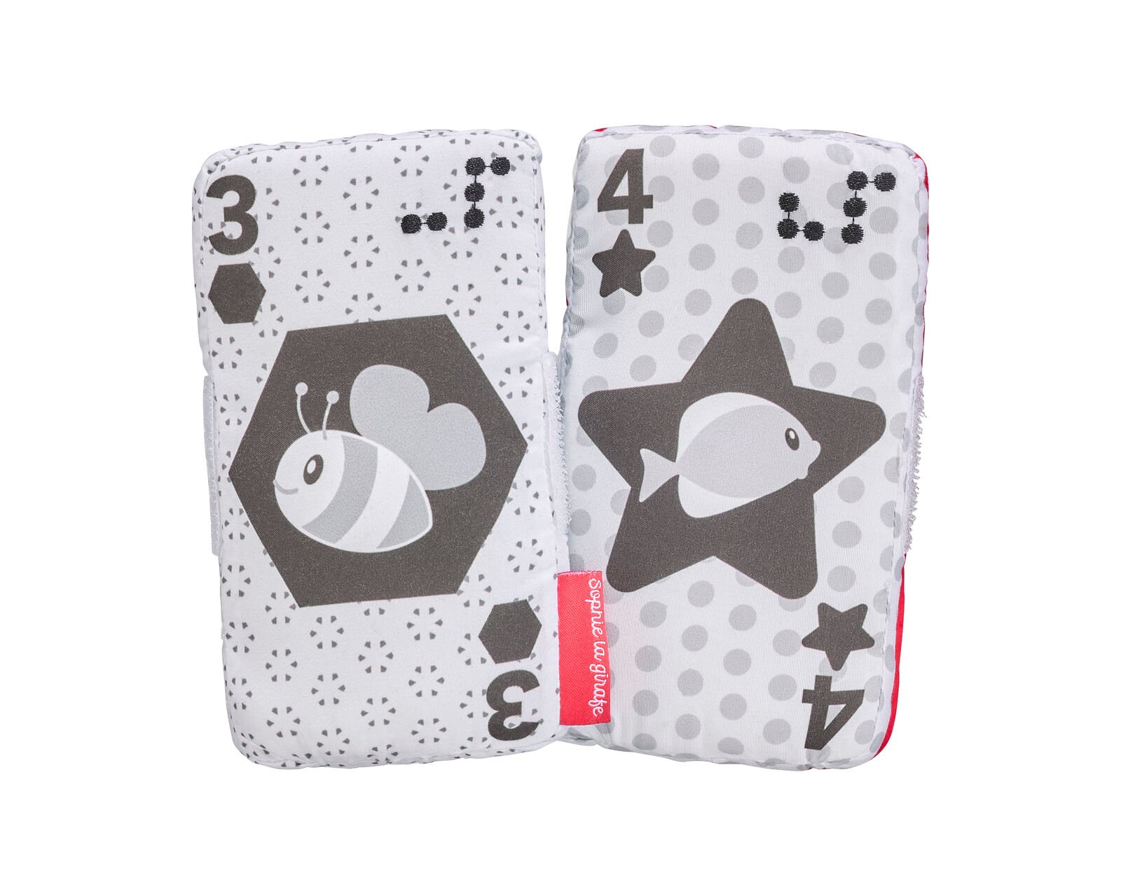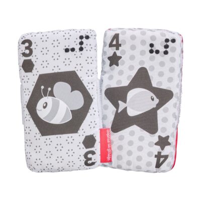 Ένα υπέροχο παιχνίδι από υφασμάτινες κάρτες, διαφόρων χρωμάτων, σχεδίων και υφών, που θα διεγείρουν όλες τις αισθήσεις του μωρού ενώ θα το διασκεδάζει!