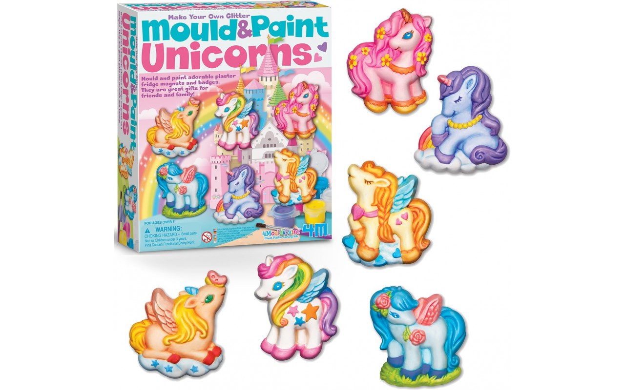 Δημιούργησε τα πιο χαριτωμένα μαγνητάκια μονόκερους! Βάλε τον γύψο στο καλούπι, χρωμάτισέ τα με χρώματα που σου αρέσουν και διακόσμησε το ψυγείο σου ή το δωμάτιό σου. Μπορούν να γίνουν και καρφίτσες για τα ρούχα σου. Περιέχονται οδηγίες στα Ελληνικά. Διαστάσεις M:18 Π:22 Υ:6εκ. Κατάλληλο για παιδιά ηλικίας 5+