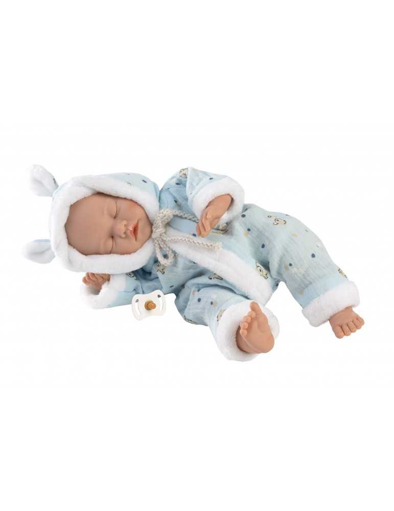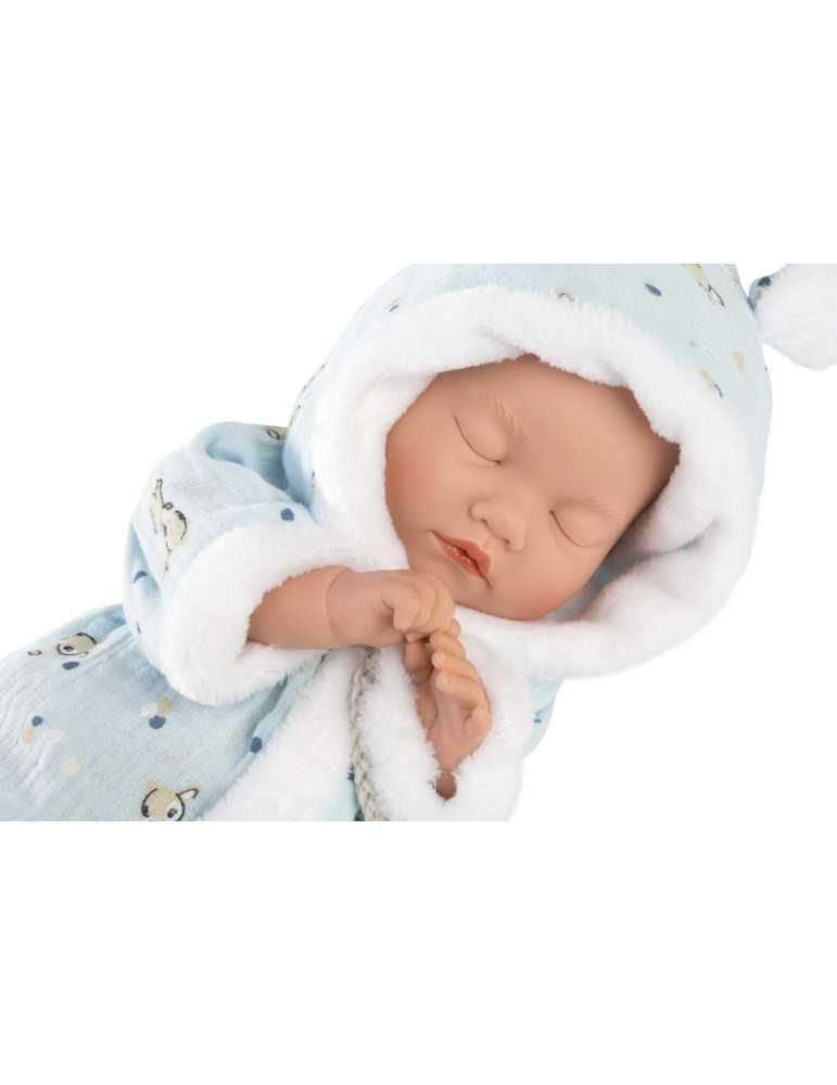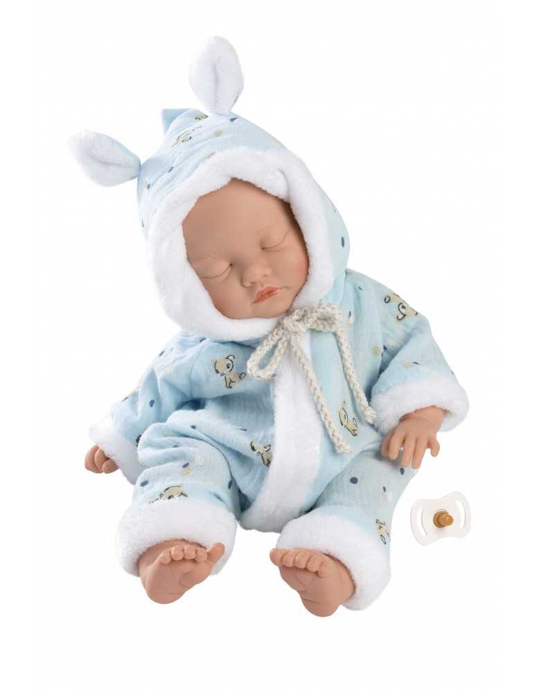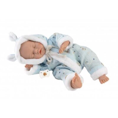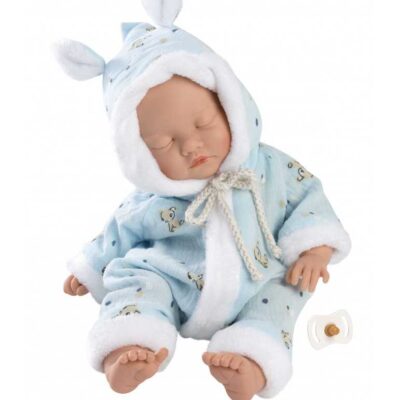 Μωρό αγόρι 31cm με ολόσωμο γαλάζιο φορμάκι, και περιστρεφόμενα άκρα. Κατασκευασμένο στην Ισπανία με εξαιρετικές λεπτομέριες σε πρόσωπο και άκρα.