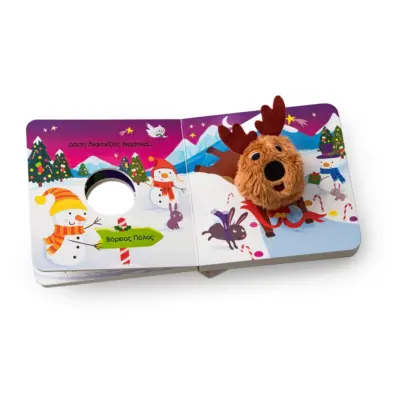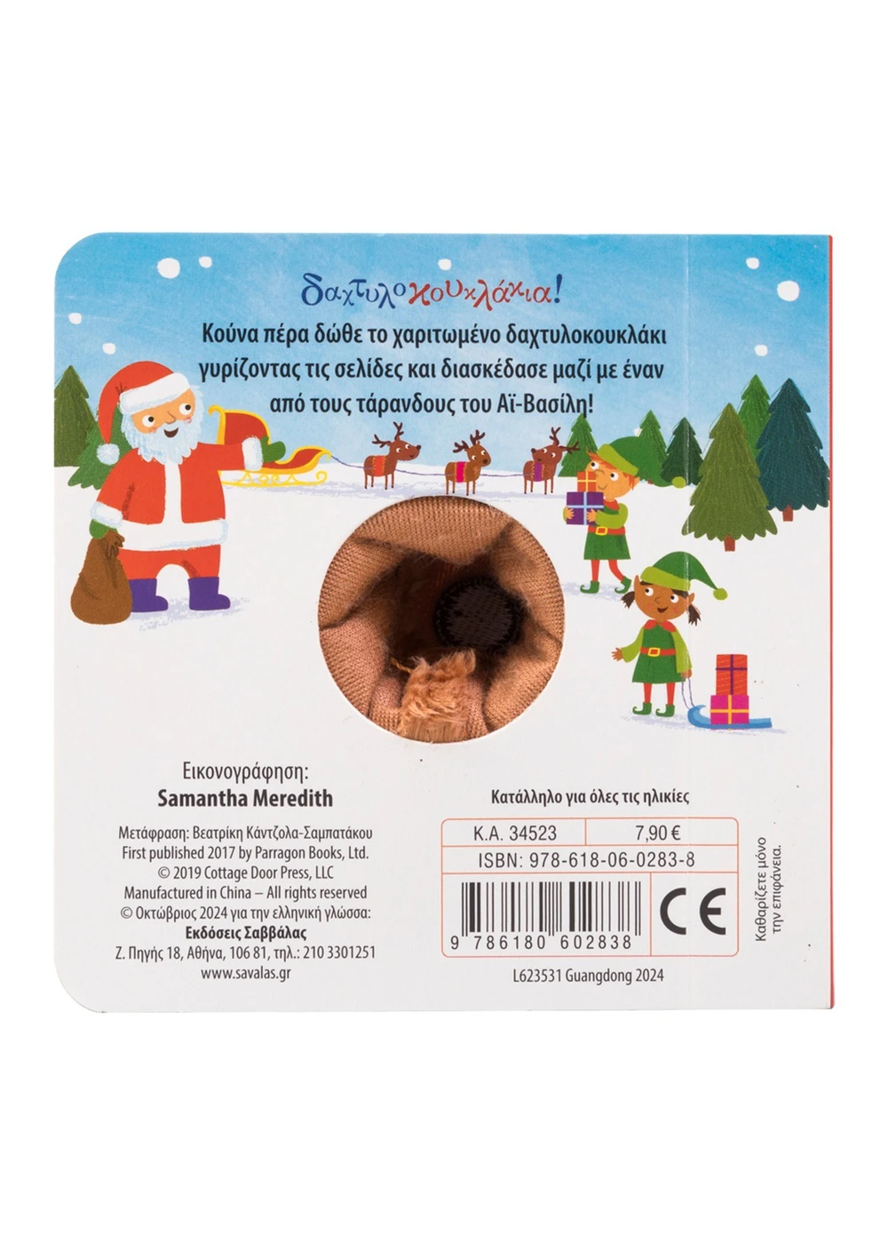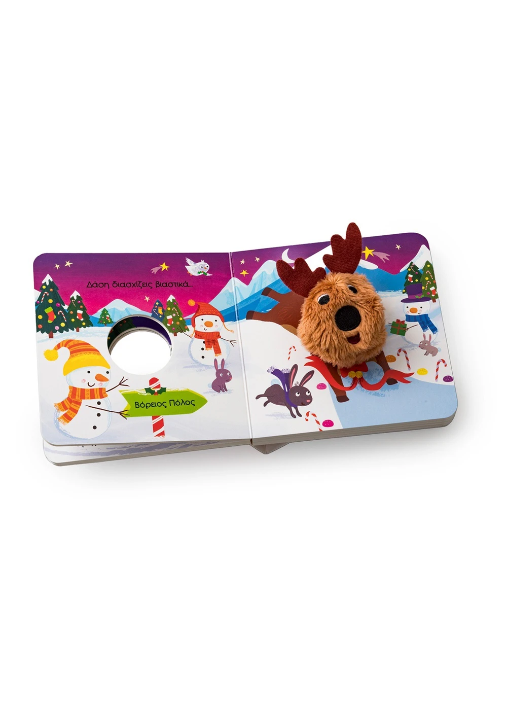 Κούνα πέρα δώθε το χαριτωμένο δαχτυλοκουκλάκι γυρίζοντας τις σελίδες και διασκέδασε μαζί με έναν από τους τάρανδους το Αϊ-Βασίλη!