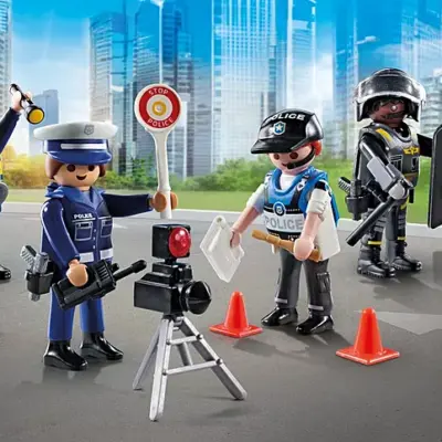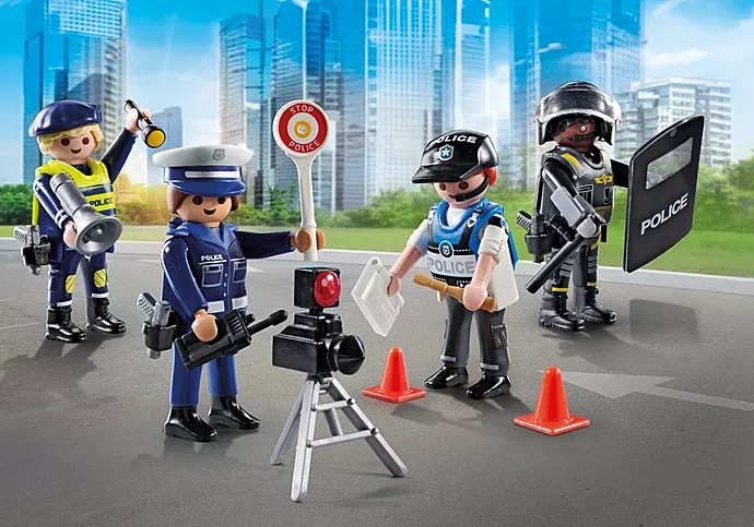 Με τέσσερις αξιωματικούς και ποικιλία ρεαλιστικών αξεσουάρ όπως θήκες, ηχείο και αστυνομική ασπίδα, οι δυνατότητες για παιχνίδι είναι ατελείωτες. Εξοπλίστε τους αξιωματικούς σας για αποστολές υψηλού κινδύνου ή για εστιασμένη εγκληματολογική έρευνα, χάρη σε εργαλεία που μπορούν να αλλάξουν όπως ανακλαστήρας ραντάρ και φακό.