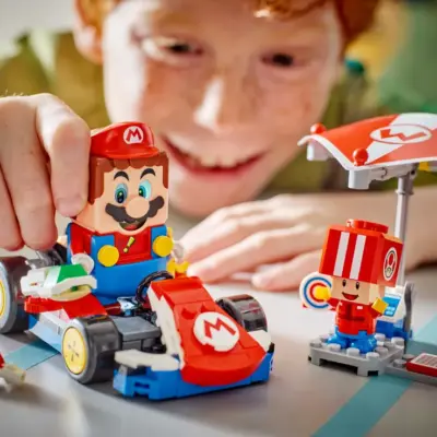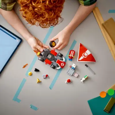 LEGO Super Mario Kart-Standard Kart (72032). Ετοιμαστείτε για περιπέτειες με αγώνες, πλαγιολίσθηση και αιωροπτερισμό με το Standard Kart με αυτό το σετ παιχνιδιού για παιδιά (72032). Μια συναρπαστική ιδέα δώρου γενεθλίων LEGO® Super Mario™ για αγόρια, κορίτσια και gamers ηλικίας 7 ετών και άνω, το σετ περιλαμβάνει ένα κατασκευάσιμο μοντέλο του Standard Kart από το Mario Kart™, σταθμό εργασίας με στόχο και φιγούρα του Toad (Pit Crew) με κόκκινη στολή ομάδας των πιτ. Το Standard Kart διαθέτει αποσπώμενο Super Glider, τροχούς που επιτρέπουν την πλαγιολίσθηση και λειτουργία εκτόξευσης για να εκτοξεύει κελύφη στον στόχο του σταθμού εργασίας. Οδηγήστε το καρτ με μια φιγούρα LEGO® Mario™, LEGO® Luigi™ ή LEGO® Peach™ (από τα σετ 71439, 71440 ή 71441–πωλούνται χωριστά) για διαδραστικό παιχνίδι, που περιλαμβάνει ηχητικά εφέ για εκκίνηση αγώνα, κορνάρισμα, πλαγιολίσθηση και αιωροπτερισμό, και ποδοπατήστε τη Ετικέτα Δράσης του σταθμού εργασίας για περισσότερες ψηφιακές αντιδράσεις. Αυτό το συλλεκτικό σετ Nintendo® είναι εξαιρετικό για ανεξάρτητο ή κοινωνικό παιχνίδι. Αναζητήστε και άλλα οχήματα (πωλούνται χωριστά) για αγώνες στη σειρά LEGO Super Mario: Mario Kart.