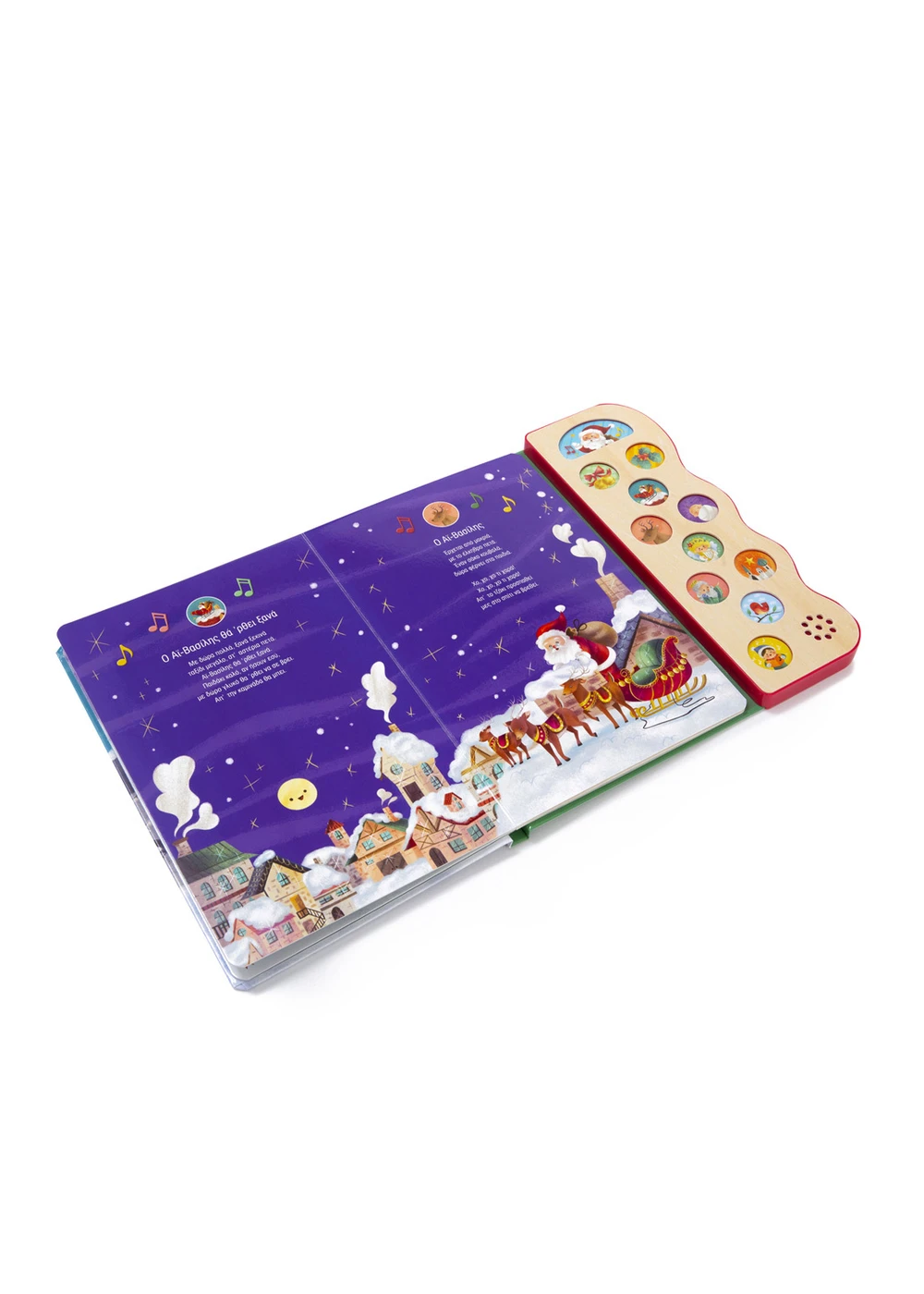 Ένα υπέροχο χριστουγεννιάτικο βιβλίο με πανέμορφη γιορτινή εικονογράφηση! Περιέχει τους στίχους και τη μουσική από 10 αγαπημένα Χριστουγεννιάτικα τραγούδια. Πατήστε το αντίστοιχο κουμπί και τραγουδήστε όλοι μαζί τα γιορτινά τραγούδια!