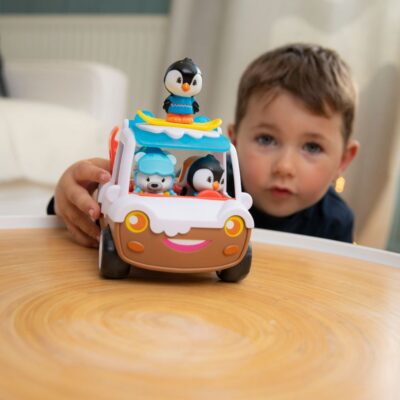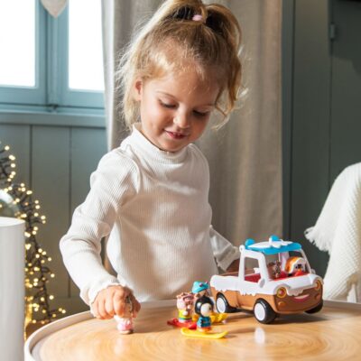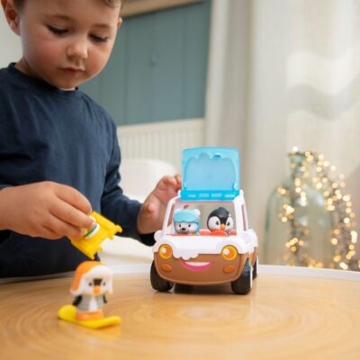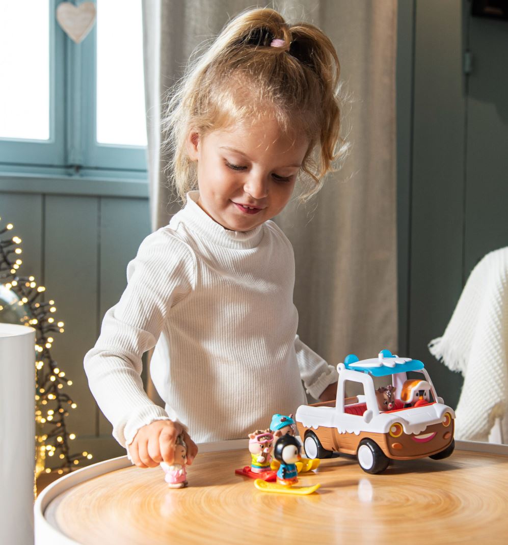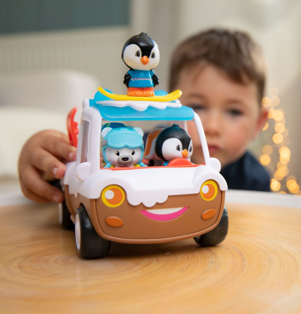 Ένα τζιπ που, με ένα μαγικό pop!, αποκαλύπτει μια περιπέτεια γεμάτη χιόνι, γέλια, σκι και ανεξάντλητη φαντασία.
