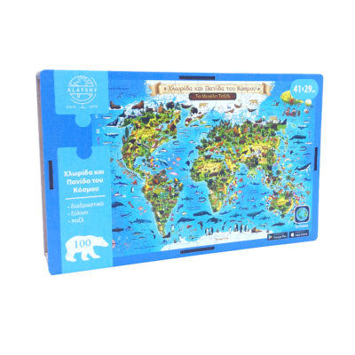 Ξύλινο παζλ παγκόσμιος χάρτης AR ‘Χλωρίδα και Πανίδα του κόσμου’ 100τμχ